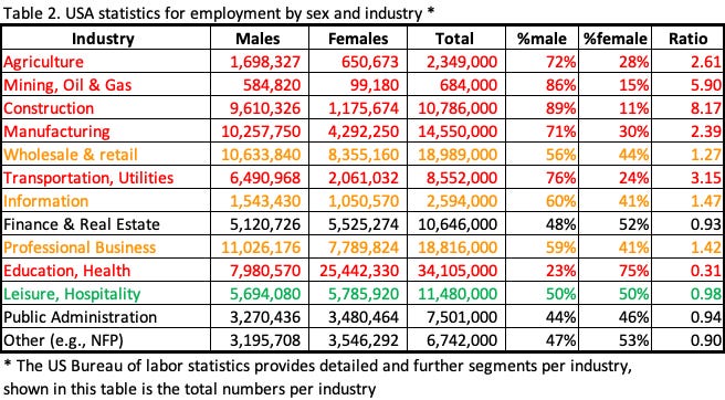 Leisure and hospitality with a ratio of .98, nonetheless, data indicates that female numbers are slightly higher than males