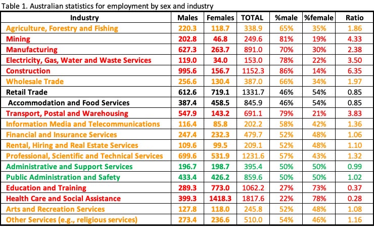 This labour structural mishap is very possibly built under the persuasion of highly male dominated industries, their understood roles, behaviour and idiosyncrasies. Subsequently, the majority (if not all) male dominated industries are based on hierarchy, strategy, formality, and rationality. In addition, since male dominated industries by design and based on social roles and stereotypes offer higher salaries than female dominated industries, controlling, influencing and managing such male dominated industries is more a matter of power than managerial skill. Keeping that power is critical to maintaining the economic benefit of male dominated industries, subsequently, laws, rights, governance frameworks, are mainly designed to protect that power resulting in intense negative, intangible and implicit outcomes for example, income inequality, showing extreme high favouritism to other men, frequent unfairness and constant greed. These outcomes, further exacerbate gender inequality at male dominated industries. The concern here, is that female dominated industries, inherit and somehow maintain a similar structure, for example, a highly female dominated industry in Australia is the public administration and safety industry, which is comprised of strong hierarchical structures and formality (e.g., titles, & office space). In addition, and unfortunately, in many cases, unfairness, favouritism and greed is worst in these industries than in male dominated industries, see the case of nursing homes in Australia (2020).